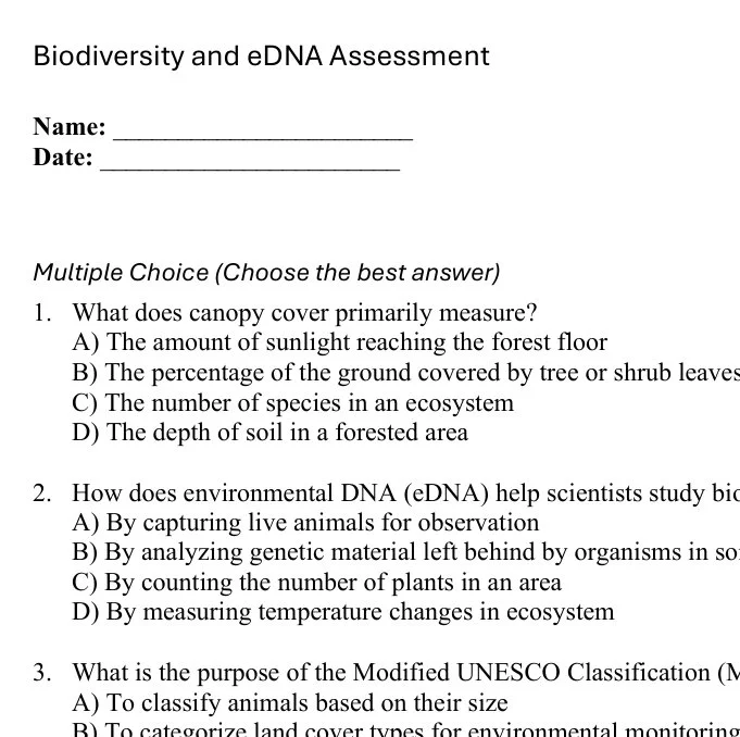 In this lesson sponsored by ExxonMobil, 10th-grade students will explore biodiversity through canopy cover measurements and environmental DNA (eDNA) analysis. They will engage in hands-on activities to assess the ecological health of a site near their school, thereby gaining insight into how genetic variation and environmental factors contribute to species' survival and reproduction, as well as the importance of biodiversity and the impact of human activity on ecosystems.